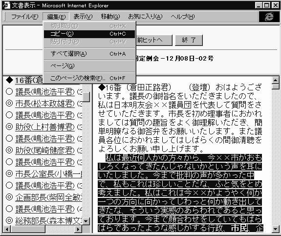 会議録を印刷するには   ※ 画面のデータはサンプルです。